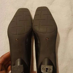 Size 9M. Real Leather. The only problem is that the left shoe's heal is missing the outer sole that goes to it.