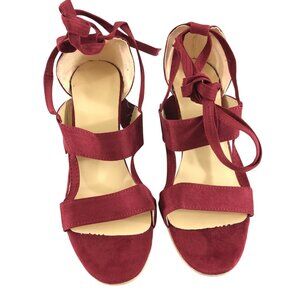 Womens Heels Strappy Lace Up Block Heel Open Toe Faux Suede Red Size 40 US 9