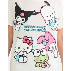 Add a playful pop of cuteness to your wardrobe with this Hello Kitty & Friends Graphic Tee, featuring an adorable design. This T-shirt brings together Hello Kitty and her beloved friends, including My Melody, Kuromi, Keroppi and Pochacco, in a cheerful and vibrant illustration. The bright colors and sweet, whimsical characters make this tee the perfect way to showcase your love for these iconic Sanrio characters, whether you're lounging at home or out with friends.