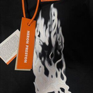 Women's Heron Preston Flaming Skull Baby T-Shirt in Black. Size Small
