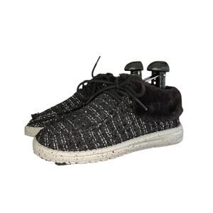 Womens Hey Dude Britt Flip Gray Flats with Faux Fur Trim Size 5