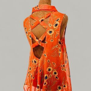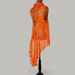 Womens Hi Low Top Size S Sunflower Dutton Yellowstone Boho Western Festival, lightweight and sheer. Waterfall hem.