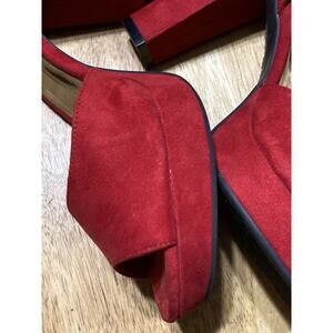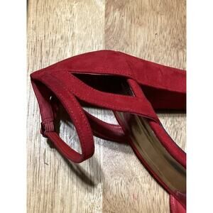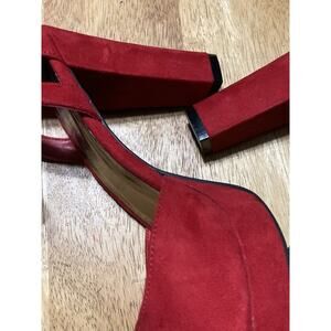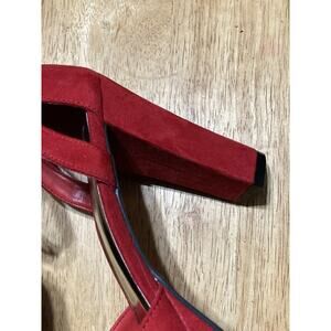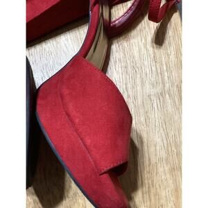 Womens High Block Heel Ankle Strap Open Toe Red Faux Suede Shoes Size 8.5