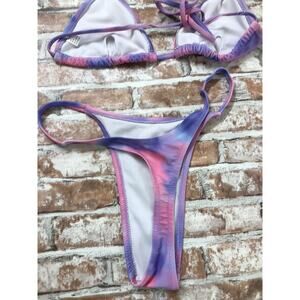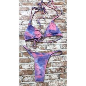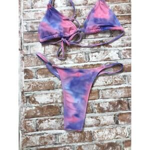Women's High Cut Thong Bikini 2Pc Bathing Suit Small Dye Multicolor Summer Beach