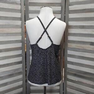 Look simply elegant by wearing the High-Neck Tankini Top from Kona Sol™. This sleeveless tankini top is covered with white irregular dot print in cream and black hues, and features a crisscross back style for trendsetting appeal. Made with a mix of soft and stretchy fabric, this printed tankini top offers flexible comfort both in and out of the water, and comes with adjustable straps for added convenience. Plus, this tankini top comes with sewn-in cups for comfortable coverage. Simply pair it with a printed or solid-color swim bottom to complete your beach-ready look.