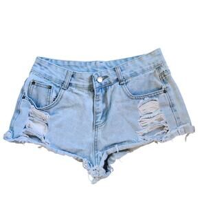 Womens High Rise Short Jean Shorts Size 2-4 Light Blue Distressed
