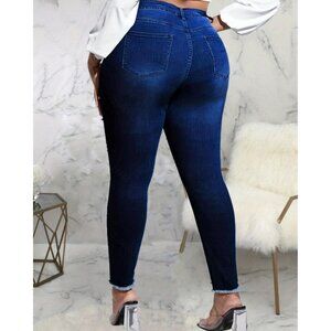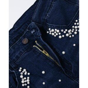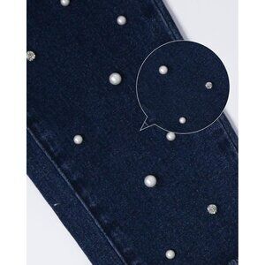 Features: These classic high-rise jeans are crafted from stretchy 100% cotton denim, offering a comfortable and flattering fit. The standout feature is the elegant pearl and rhinestone embellishments that add just the right amount of glam, perfect for dressing up or keeping it casual.
