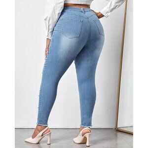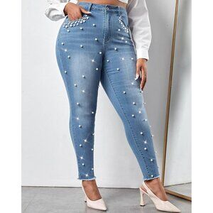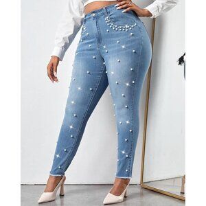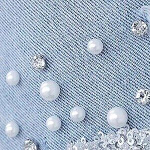 Features: These jeans are made from premium denim with high-stretch for a comfy, durable fit. The high-rise waist slims and flatters, while the slim fit hugs your curves perfectly. Unique faux pearl and diamond embellishments along the frayed fringe add a touch of elegance. Handy patch pockets make them practical, too. Style them up with heels or keep it casual with sneakers!