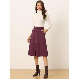 Womens High Waist Button Front A-Line Skirt Burgundy