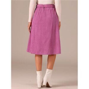 Corduroy Fabric, Tie Waist, A-Line, High Waisted, Elastic Waist at Back, Slant Pockets, Skirt with Buttons, Belt Loops, Midi Length