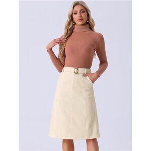 Women's High Waist Elastic Back A-Line Skirt Apricot