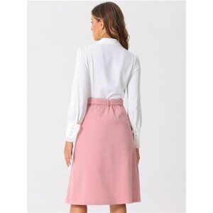 Women's High Waist Elastic Back A-Line Skirt Pink