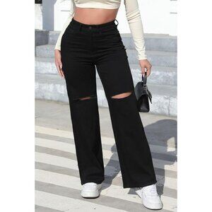 Women’s High Waist Ripped Wide Leg Denim Jeans Boyfriend Style Casual
