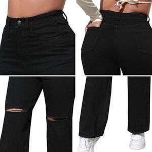 Features: These retro streetwear-inspired jeans are made with a comfy spandex-cotton blend that shapes your legs and provides all-day comfort. The high-rise, wide-leg boyfriend fit gives off a effortlessly cool vibe, with distressed holes and a classic five-pocket design. Zipper closure and full-length cut. Easy to pair with your favorite tops and shoes for any casual outing. Stylish, versatile, and perfect for matching with sneakers or boots.