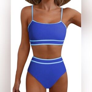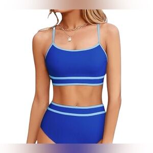 Women's High Waisted Bikini Set Sporty 2 Piece Swimsuit Color Block Cheeky Lg
