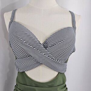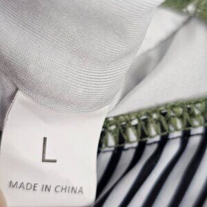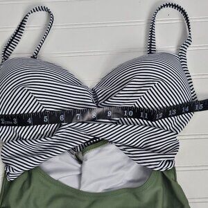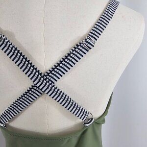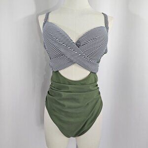 Women's High Waisted Cut Out Green Stripe Contrast One Piece Swimsuit Size L