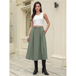 Elegant Design: Designed with flattering pleats, an A-line silhouette, and practical side slit pockets, this high waisted midi skirt combines elegance with ease. The flared cut enhances movement while creating a sleek, feminine vibe