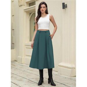 Elegant Design: Designed with flattering pleats, an A-line silhouette, and practical side slit pockets, this high waisted midi skirt combines elegance with ease. The flared cut enhances movement while creating a sleek, feminine vibe