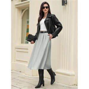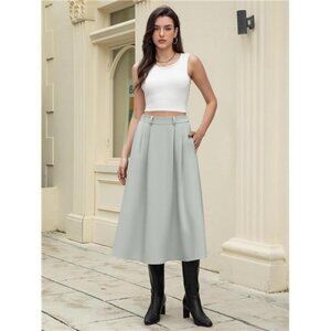 Elegant Design: Designed with flattering pleats, an A-line silhouette, and practical side slit pockets, this high waisted midi skirt combines elegance with ease. The flared cut enhances movement while creating a sleek, feminine vibe