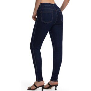 Features: These high waisted skinny jeans are made from a stretchy, luxurious denim that elongates your legs and hugs your curves. The deep blue wash adds a polished look, perfect for dressing up or down. Decorative topstitching in deep brown adds just the right amount of style detail. Durably crafted with dual buttons and a quality SBS zipper for lasting wear.