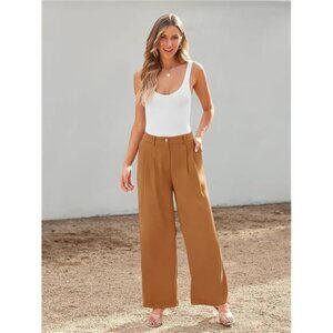 Women's High Waisted Wide Leg Dress Pants - Dressy Trousers , Brown