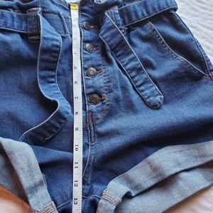 Women's High Waisted size M paperbag elastic with tie waist Denim jeans Shorts