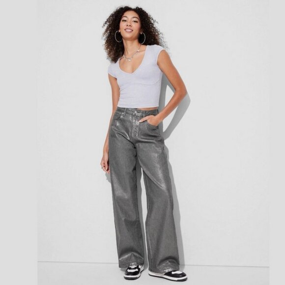 Women's High-Rise Baggy Jeans - Wild Fable Dark Gray 0