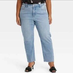 Elevate your everyday denim collection with these High-Rise Slim Fit Straight Jeans from Ava & Viv. Made from stretchy denim fabric for flexible movement, these flattering high-rise jeans feature a straight slim fit and a frayed finish on the hem for an added boost of laid-back style. The fly button, zipper closure and belt loops help you find a better fit, while the classic front and back pockets add functional flair. Pair with an array of tops for a range of styling options.