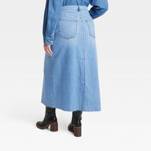Update your denim wardrobe with this High-Rise Denim Maxi Skirt from Universal Thread. The medium-wash skirt is made of stretchy cotton for breathable comfort that moves with you. Cut to a maxi length, this high-rise skirt showcases classic denim features and an edgy front slit, making it a must-have in your collection of separates. Keep it casual with a tee and white sneakers, dress it up with a blouse and stylish sandals or add a touch of class with a button-down and brogues.Universal Thread: The denim collection that's true to you.