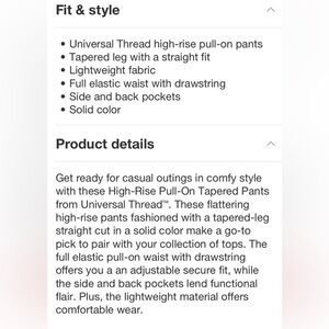 Women's High-Rise Pull-On Tapered Pants - Universal Thread™ White new