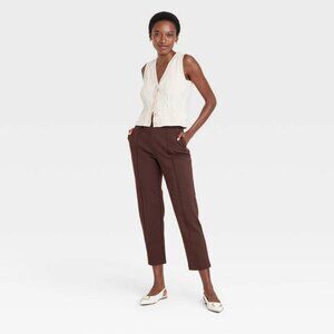 Women's High-Rise Tapered Ankle Knit Pull-On Pants - A New Day™ Brown XS