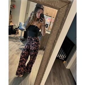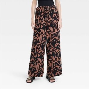 Women's High-Rise Wide Leg Linen Pull-On Pants A New Day™ Black/Brown Geometric