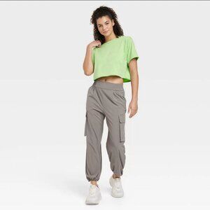 JoyLab Women's Cinch Hem Woven Cargo Pants High Rise Casual Fit