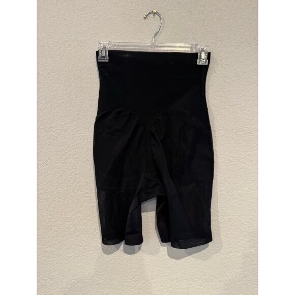 These high-waisted black shapewear shorts provide firm compression for a smoother silhouette. Designed to slim the tummy, waist, and thighs seamlessly under clothing. The mid-thigh length offers shaping without visible lines. 1 Comfortable and supportive for all-day wear.