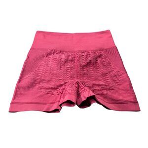 These high-waisted seamless shorts are designed for flexibility and comfort during workouts. The nylon-spandex blend provides excellent stretch and shape retention, making them ideal for various fitness activities. The textured pattern adds a modern look, while the pink color infuses a pop of style into your activewear collection.