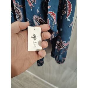 This Women's Hippie Boho Classic Top in size M is a versatile piece perfect for various occasions such as travel, weddings, parties, casual outings, and business events. The top features a geometric paisley kale pattern, long balloon sleeves, and a pullover closure for easy wear. Made from polyester, this blouse from Style& Co has a regular fit and is machine washable for convenient care. Whether you're dressing up for the office or heading out in style, this bohemian-inspired top adds a touch of charm and personality to your wardrobe.