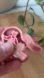 Copper tone metal with pink, red & white enamel and glazed finish. Butterfly clasp on their back.