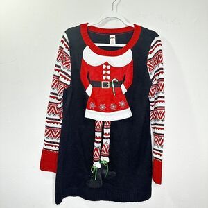 Women’s Holiday Time Ugly Christmas Elf Sweater Bells Bling Swinging Legs Large