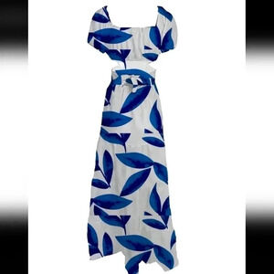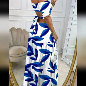 Women's Hollow Out Off Shoulder Plant Print High Waist A-Line Dress