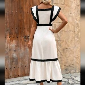 Women's Hooded Floral Print Long Dress With Square Neckline