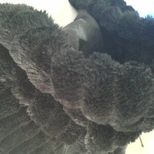 Women's Hooded Ribbed Faux Fur Jacket. Size is Large