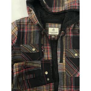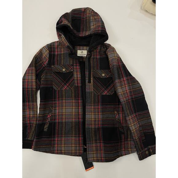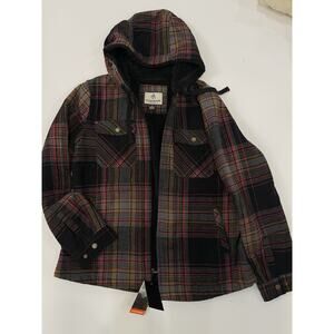 Women's Hooded Shacket Berber Lined Shirt Jacket Large Licorice Root Plaid NWT