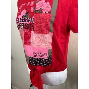 Women's Hot & Delicious Red Celebrate Diversity T-Shirt Tie in Front Large