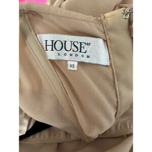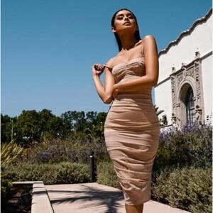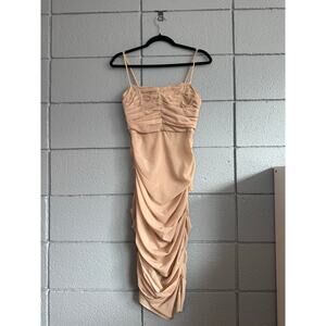 Women's House of CB Railea Nude Taupe Corset Ruched Midi Sheer Chiffon Dress XS