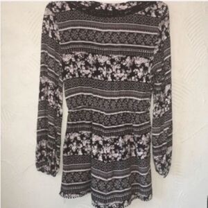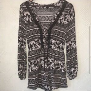 Cute jumpsuit with Beaded Tassels Size Small Long sleeve shorts Black and White Print