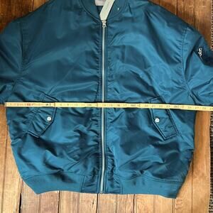 Women’s Hudson Jeans Teal warm oversized quilted satin Bomber Jacket new NWT