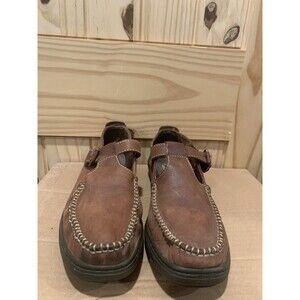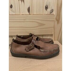 Women's Hush Puppies Moccasin Size 11M Brown T Strap Buckle Leather 54201