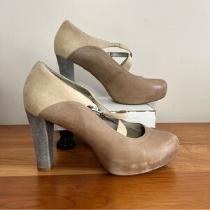 Womens Hush Puppies Suede Retro Platform Block Heel Pumps Colorblock Size 9M