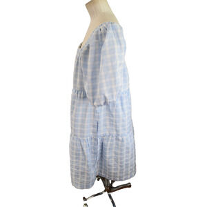 Women's Hyacinth House Greta Mini Tiered Dress Blue White Gingham Medium