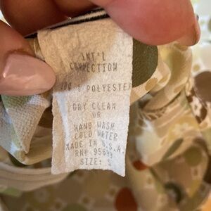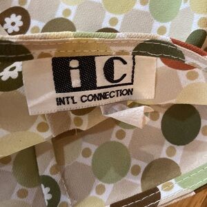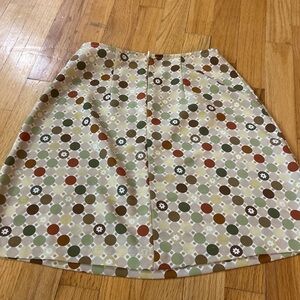 Tan skirt with red/green/brown/cream design. Back zip closure.